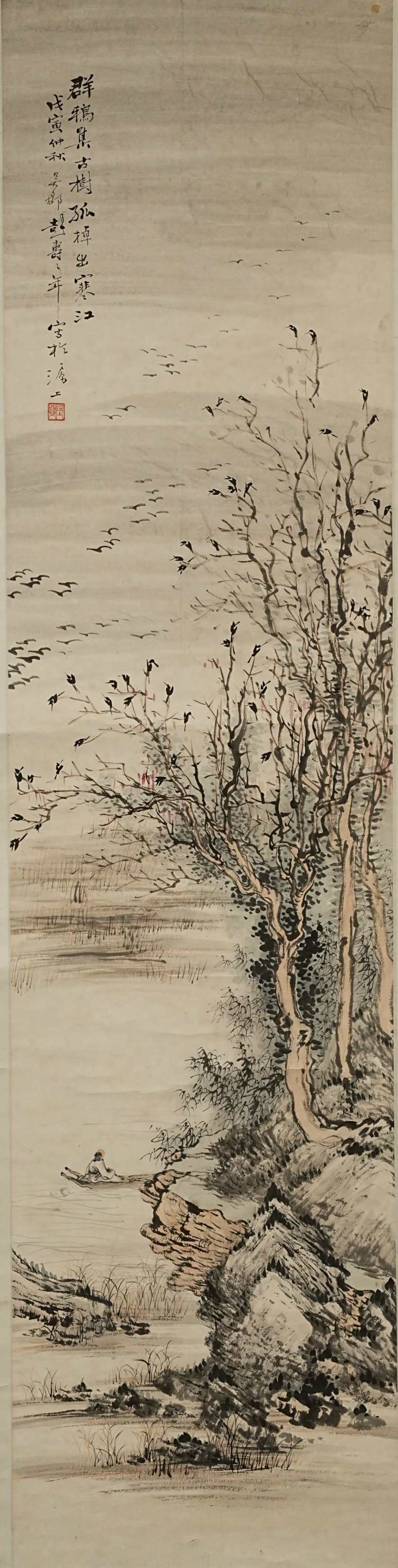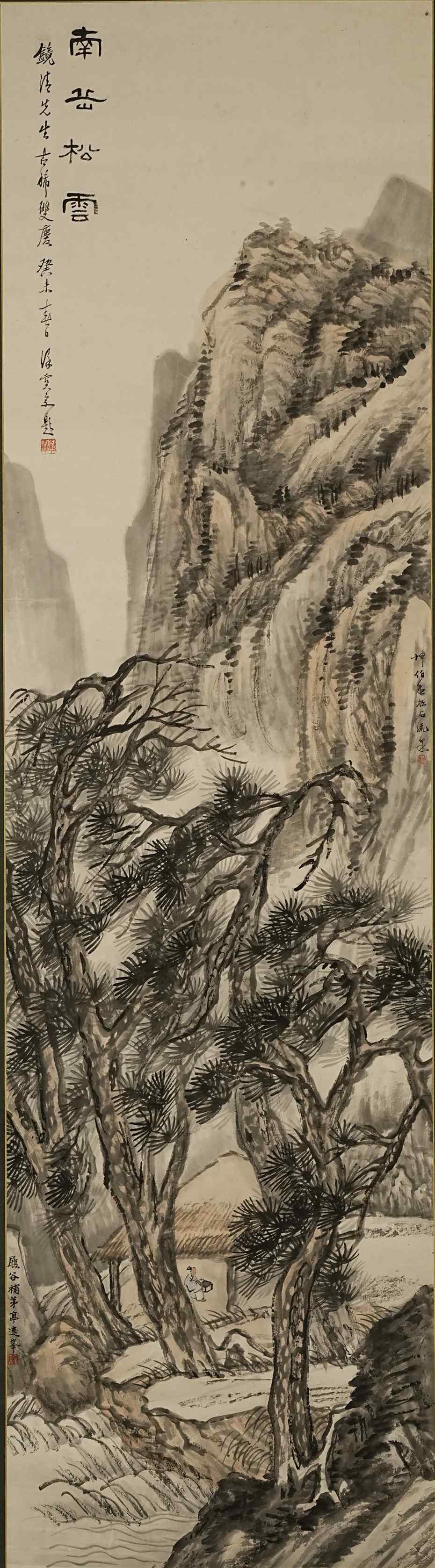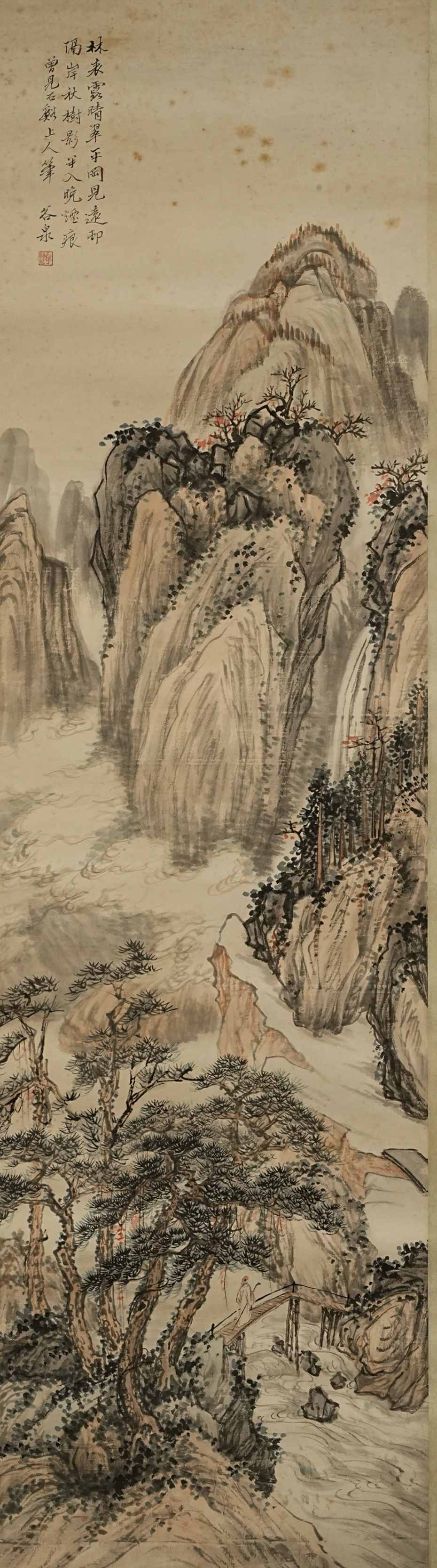 504 顾坤伯 宗履谷 山水人物图 纸本挂轴 日本桐箱附