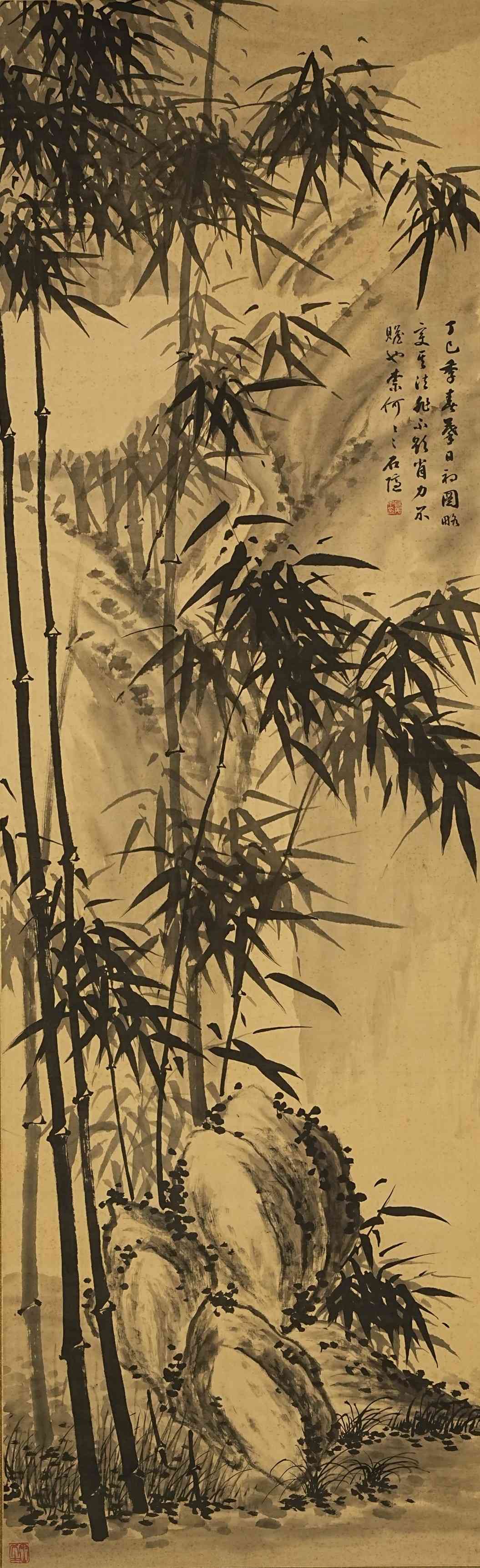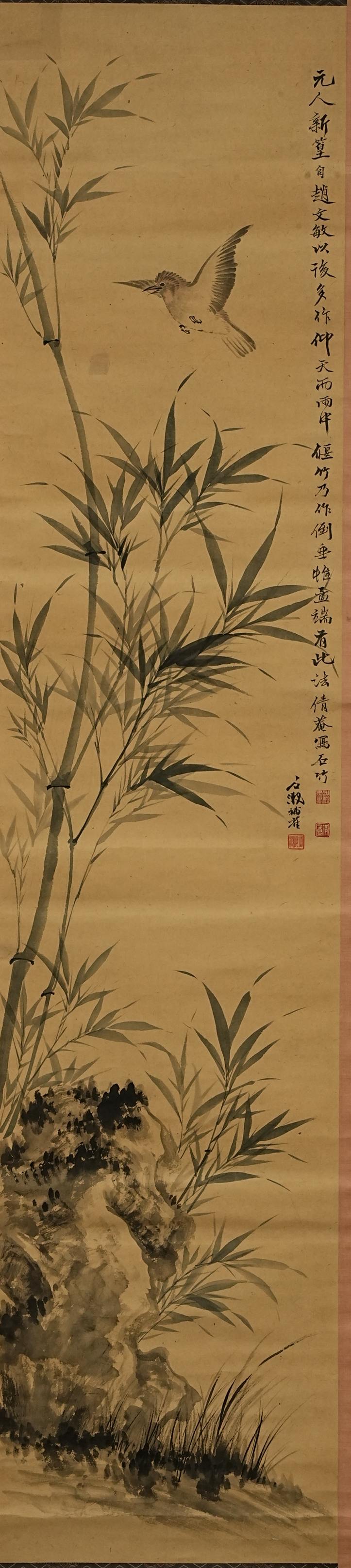 505 长尾甲 墨竹图 绢本挂轴 日本桐箱附