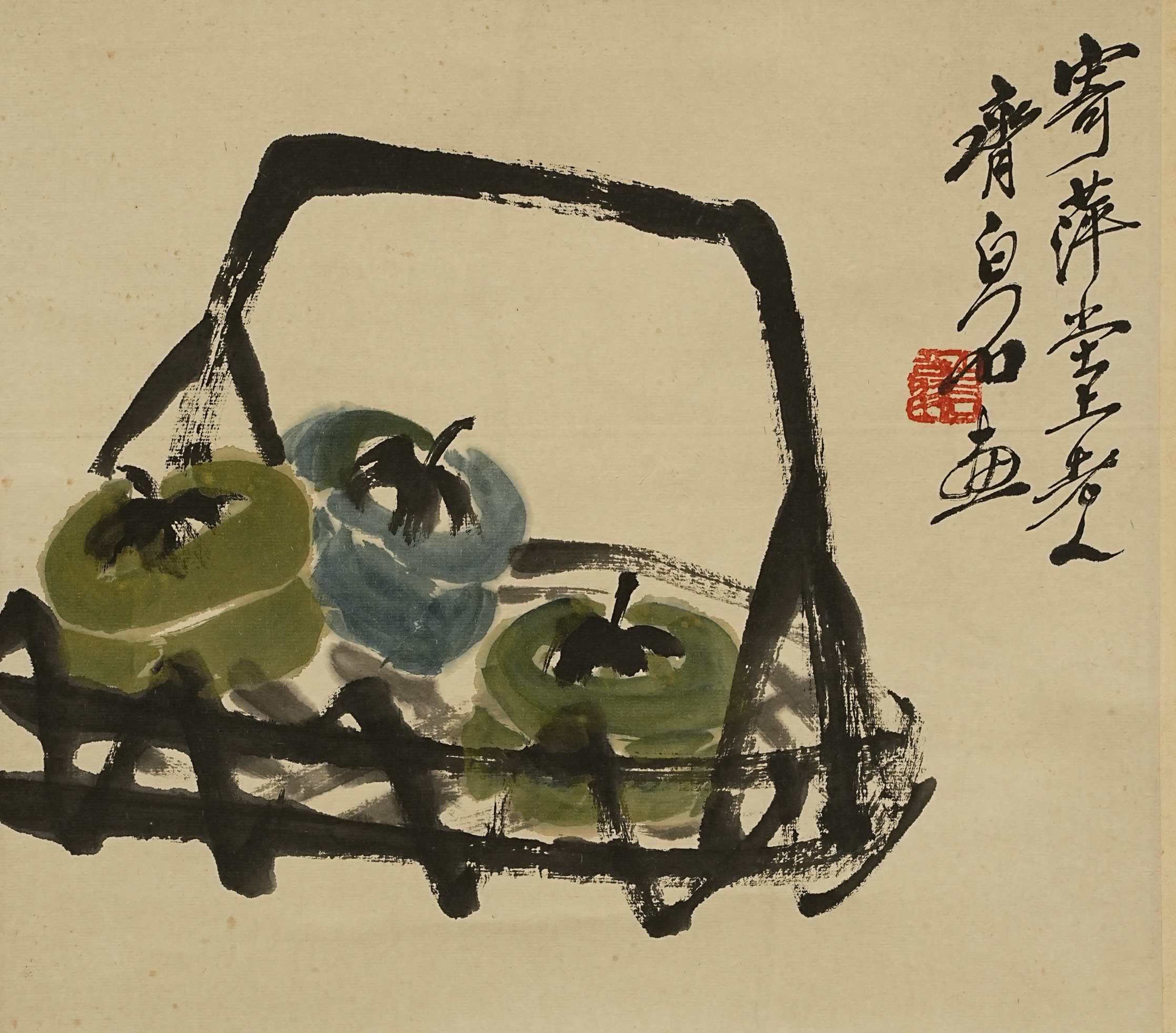 518 齐白石 竹篮柿子图 纸本挂轴