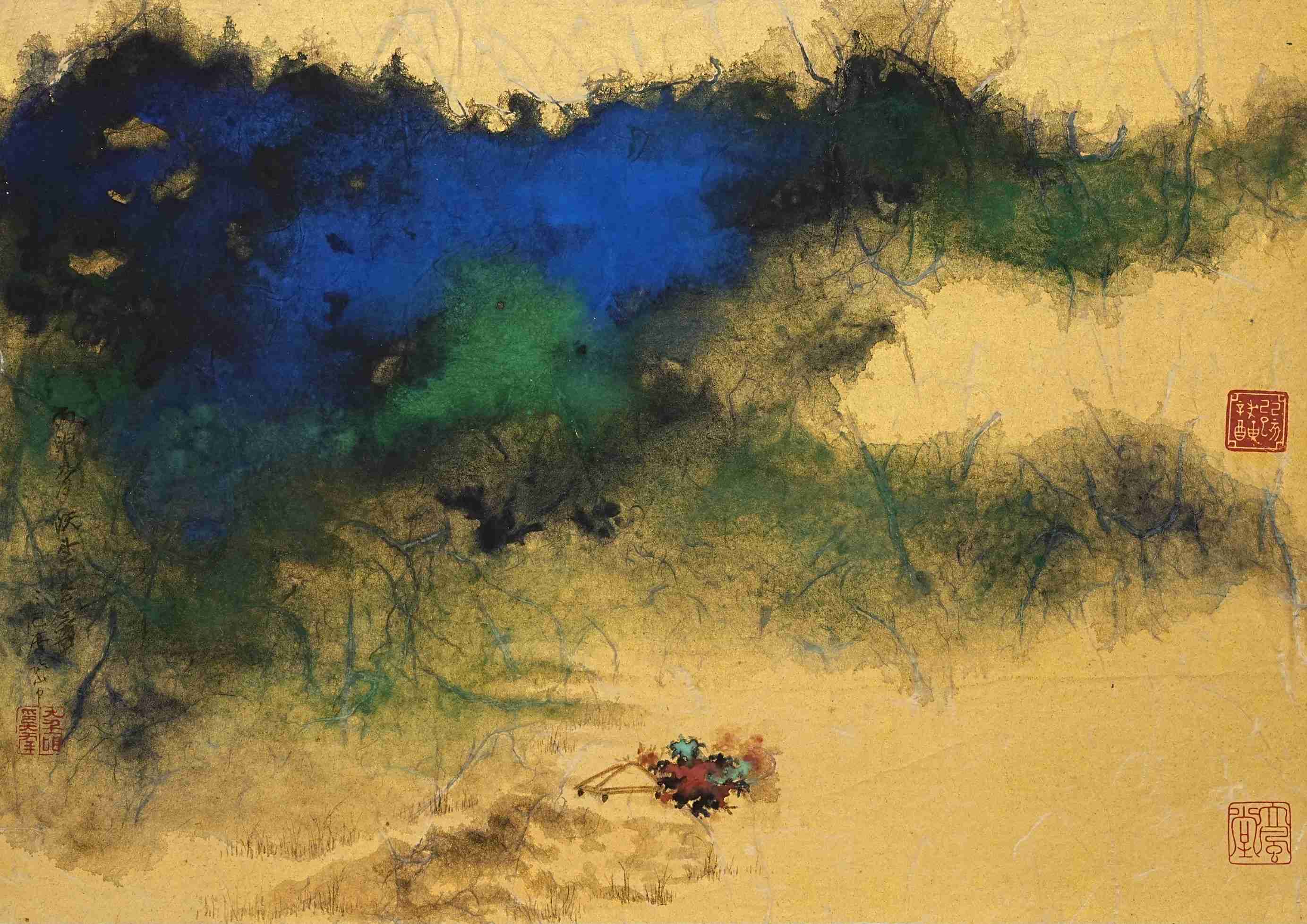 630 张大千 泼彩山水 纸本框装 箱书附