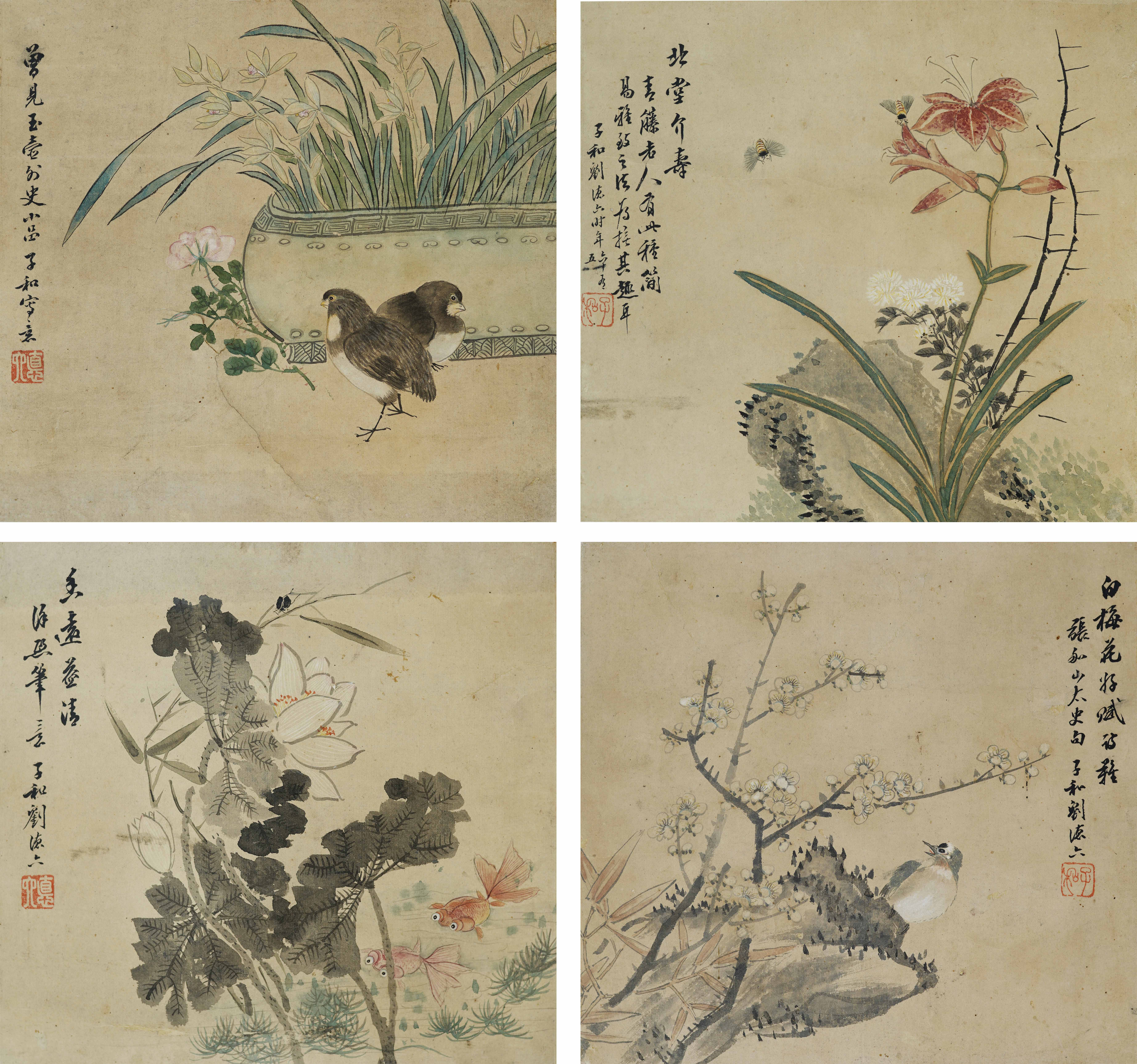3256 花鸟四屏
