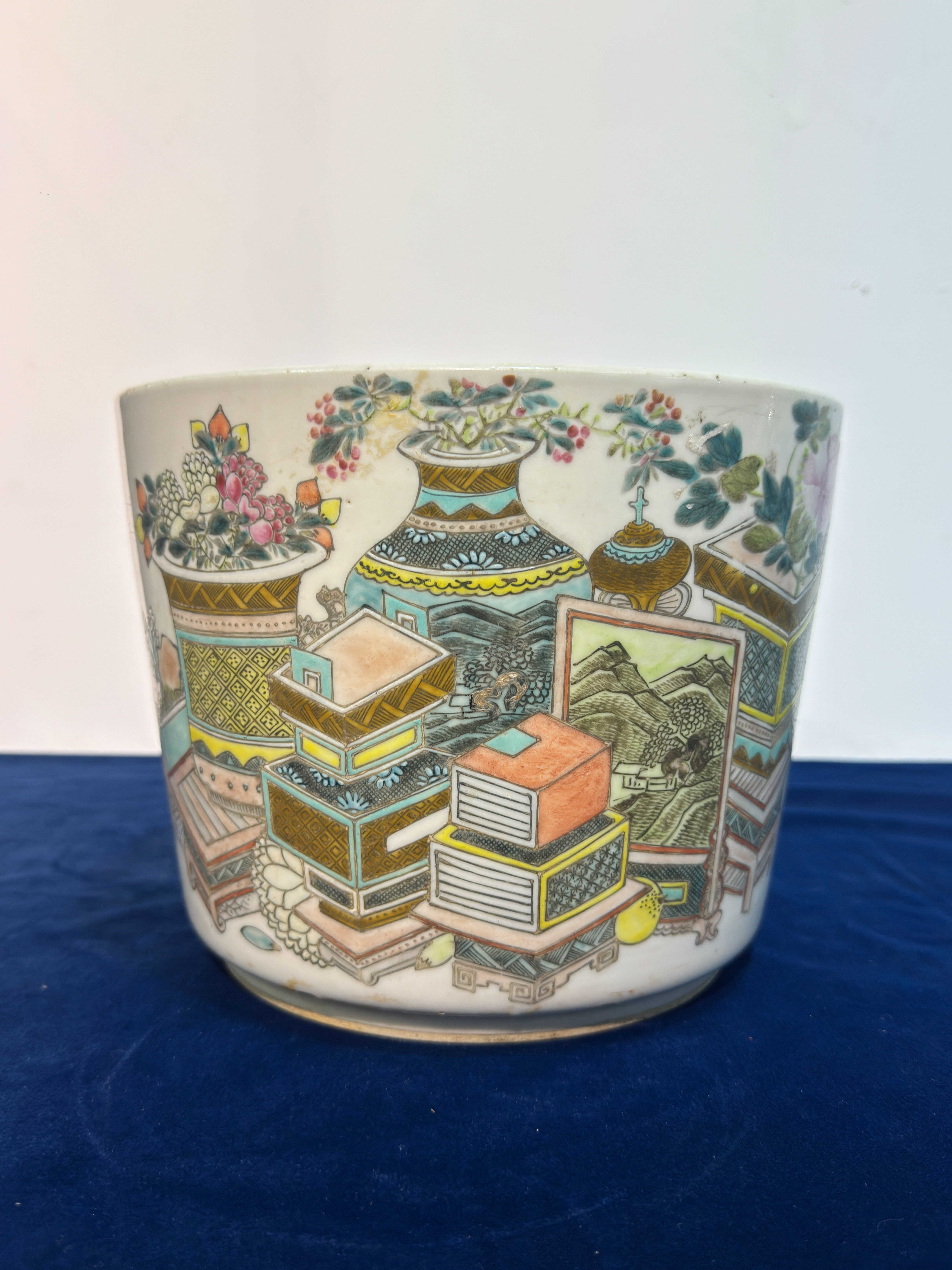 1185 余鸿宾作浅绛彩博古纹花盆