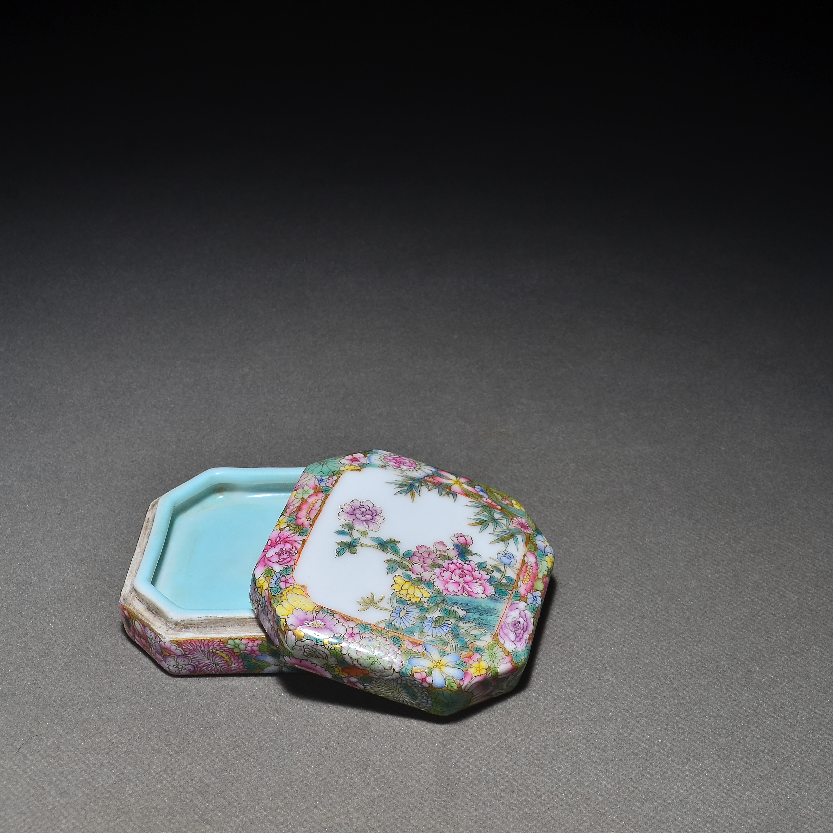 1186 珐琅彩万花不落地八方印盒