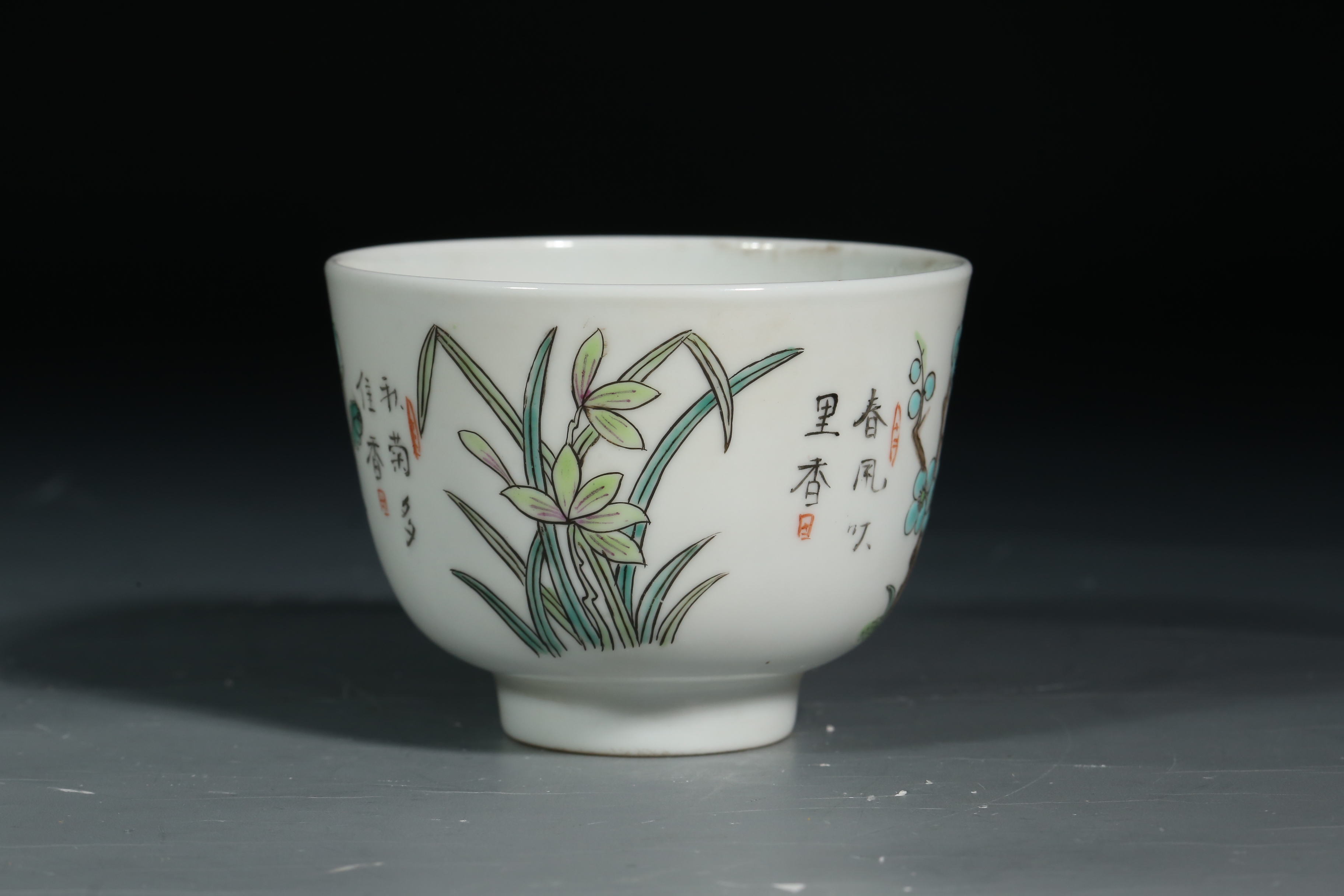 1501 粉彩梅兰竹菊茶圆