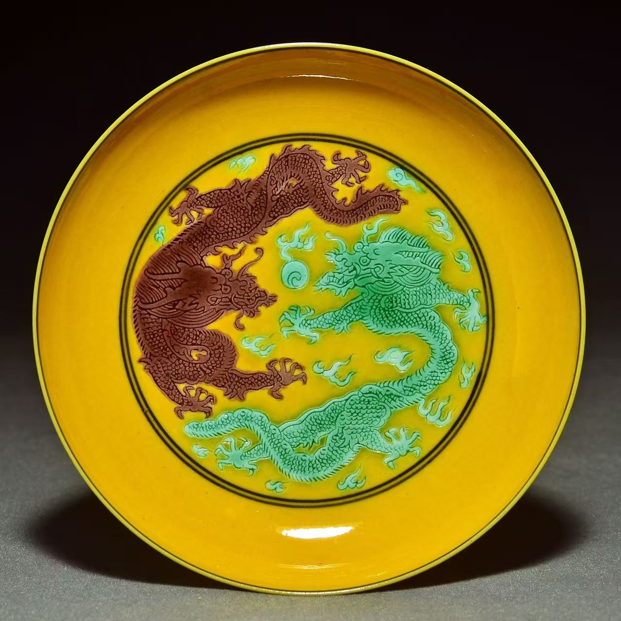 1507 素三彩双龙戏珠纹盘