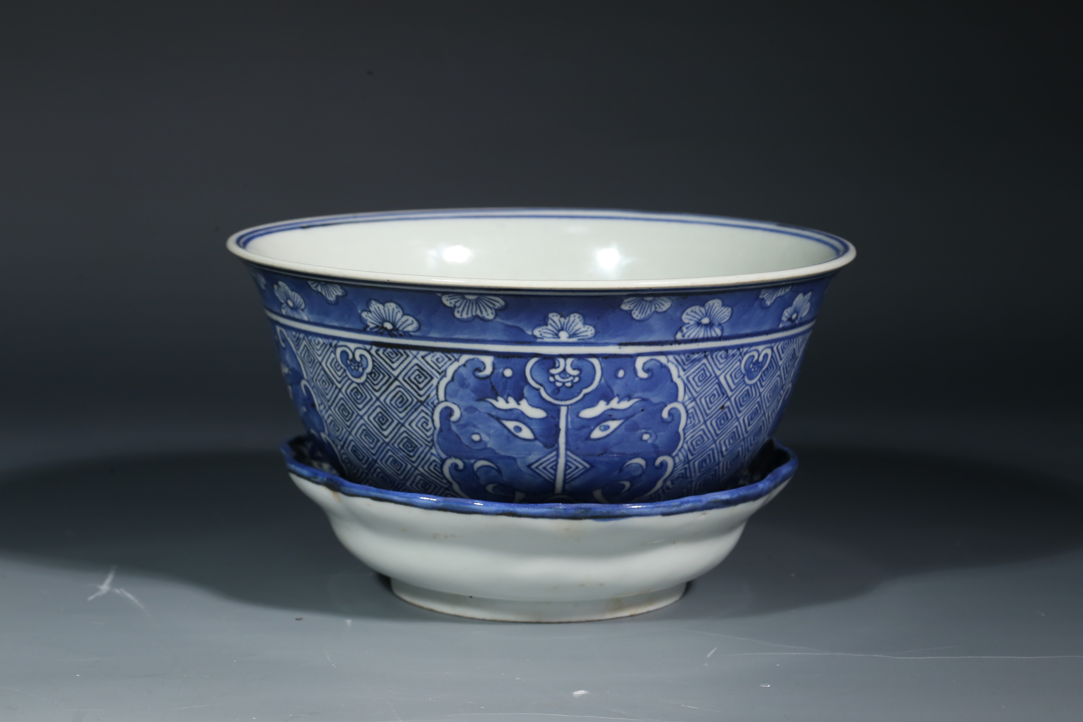 1513 青花留白碗、托两件一组