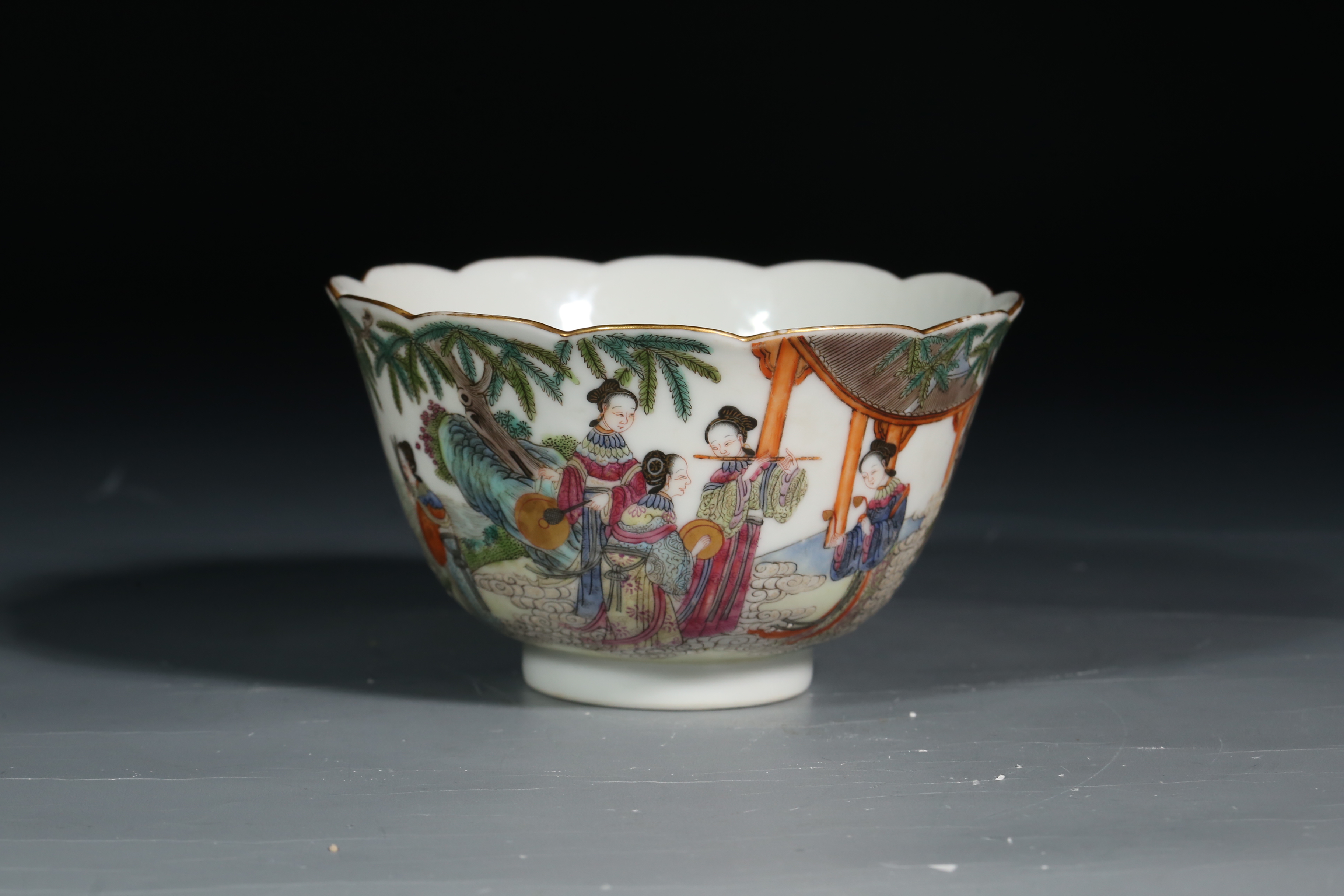 1518 粉彩仙人乘槎仕女图花口杯