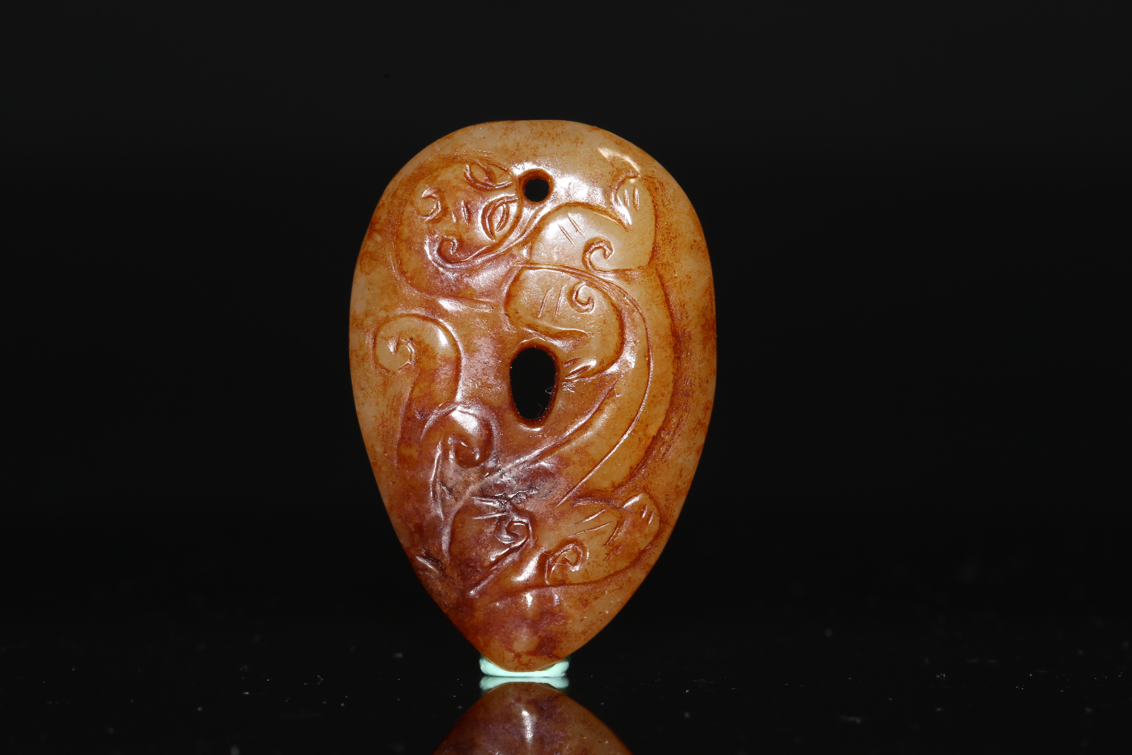 1535 红沁玉雕螭龙鸡心佩