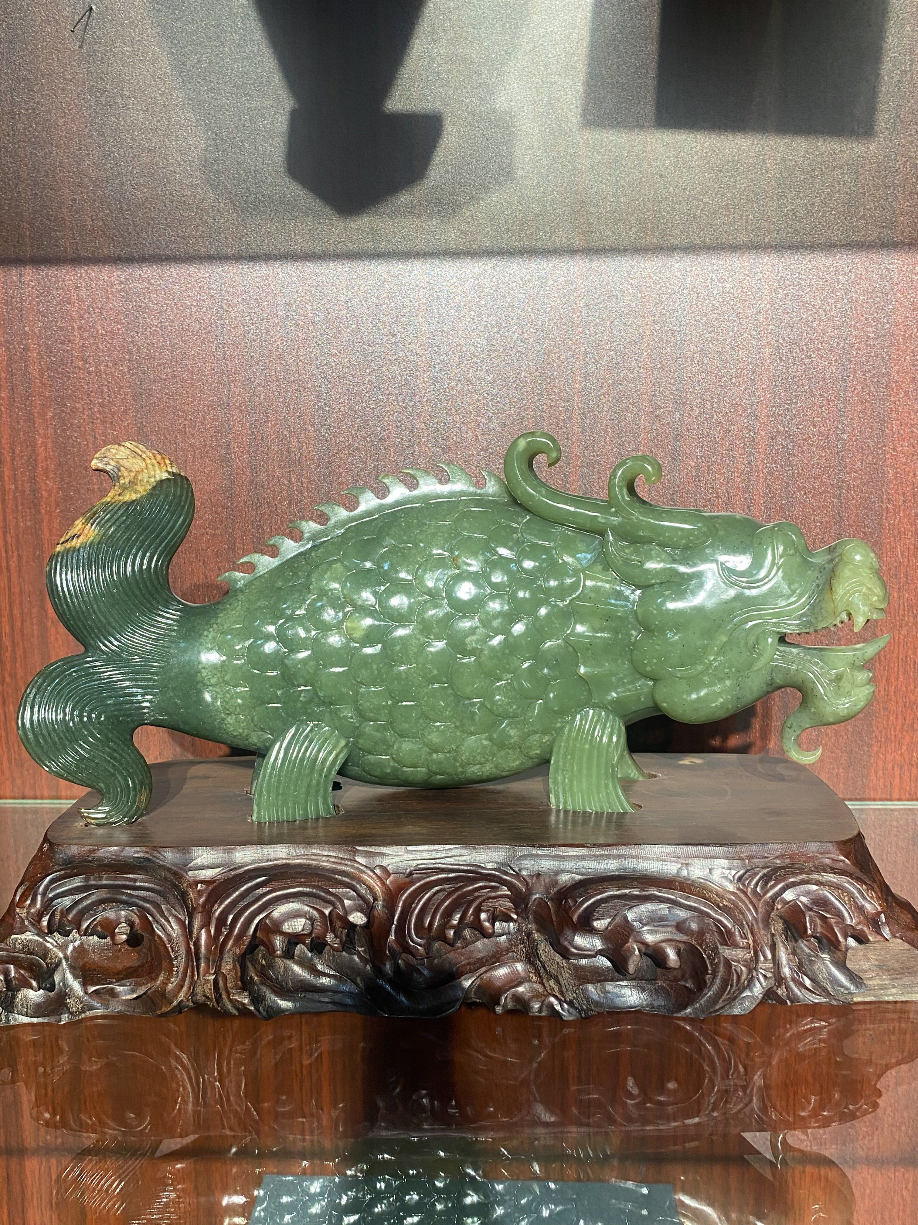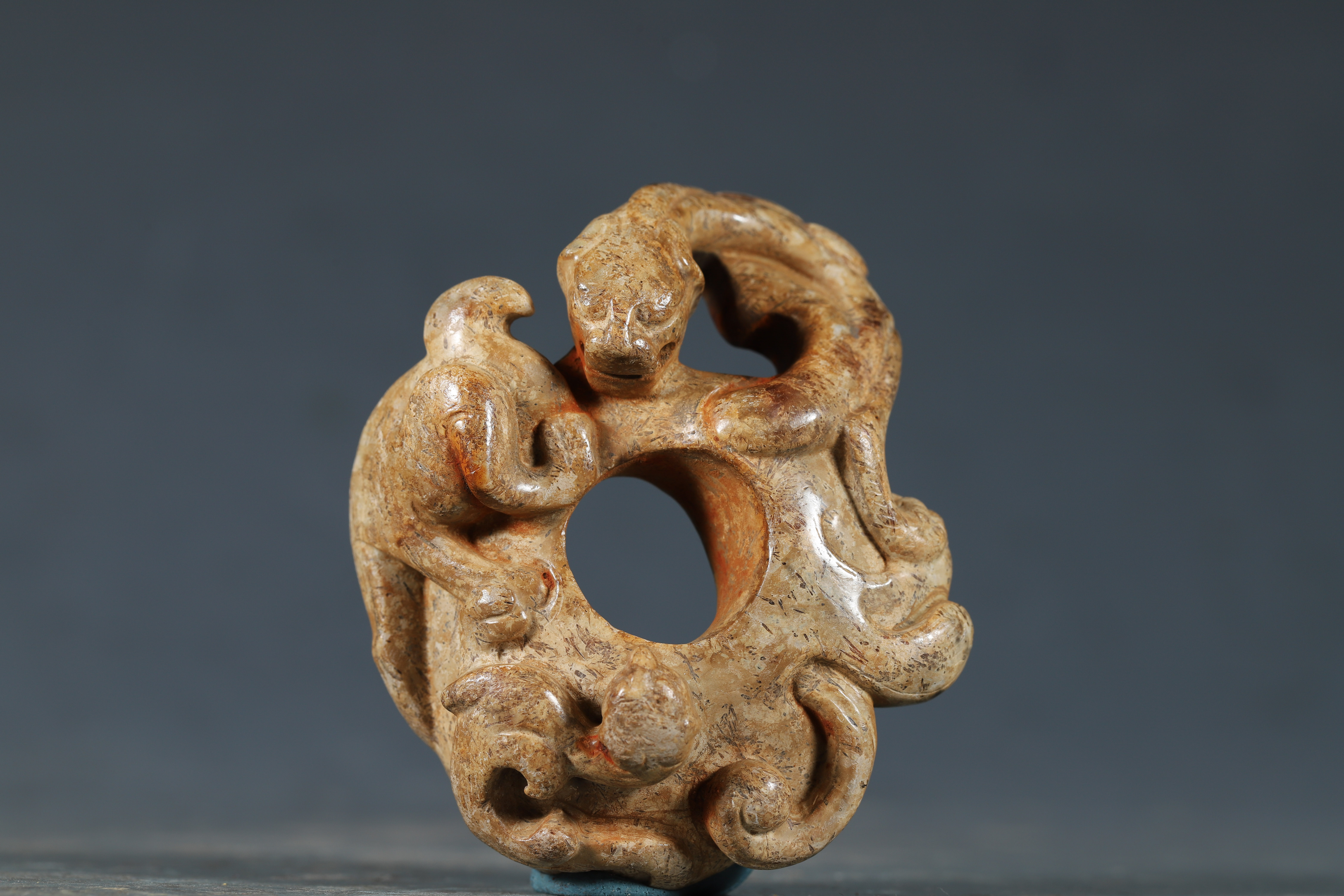 1300 和田白玉籽料螭龙高浮雕玉勒子