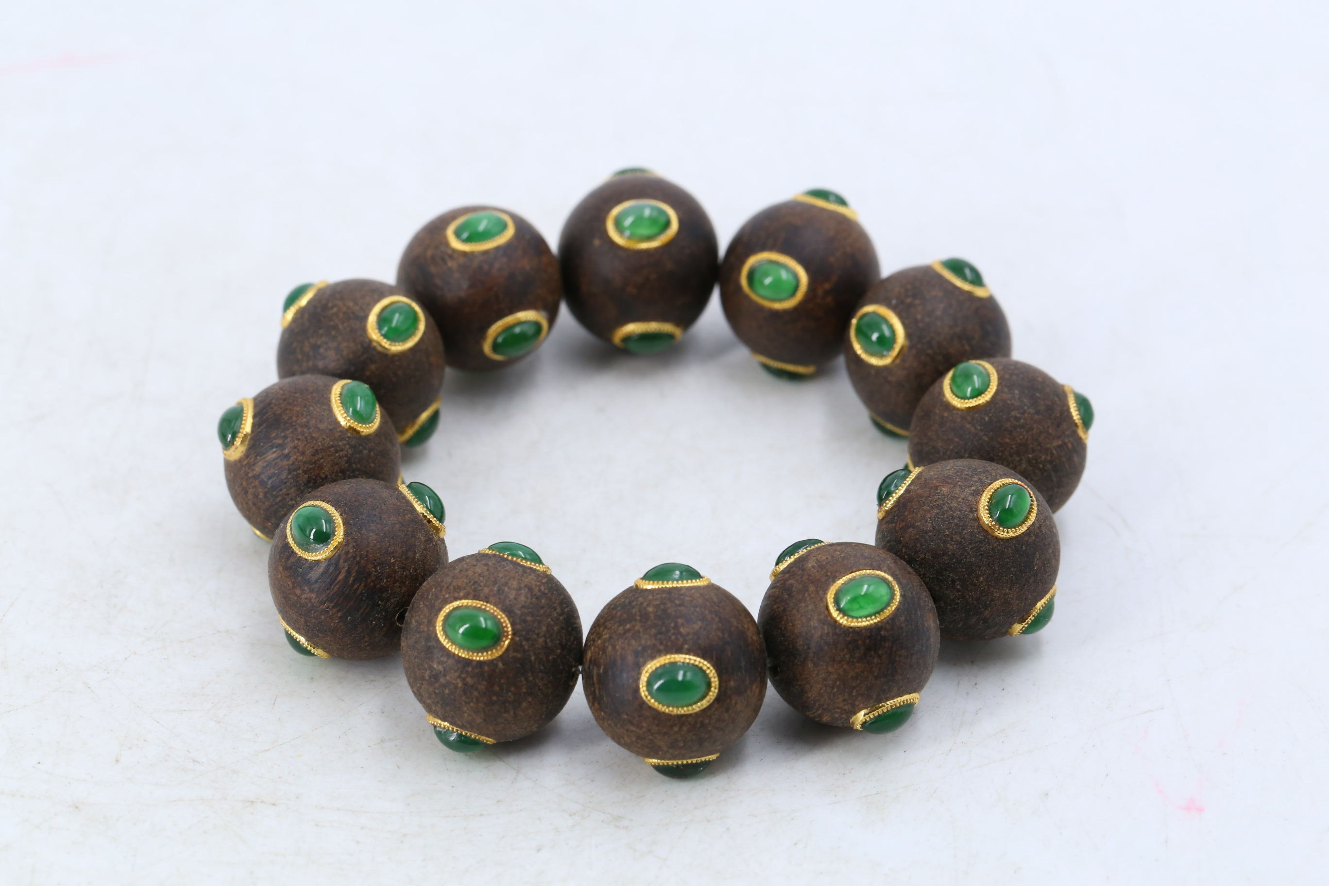 2261 沉香嵌翡翠手串