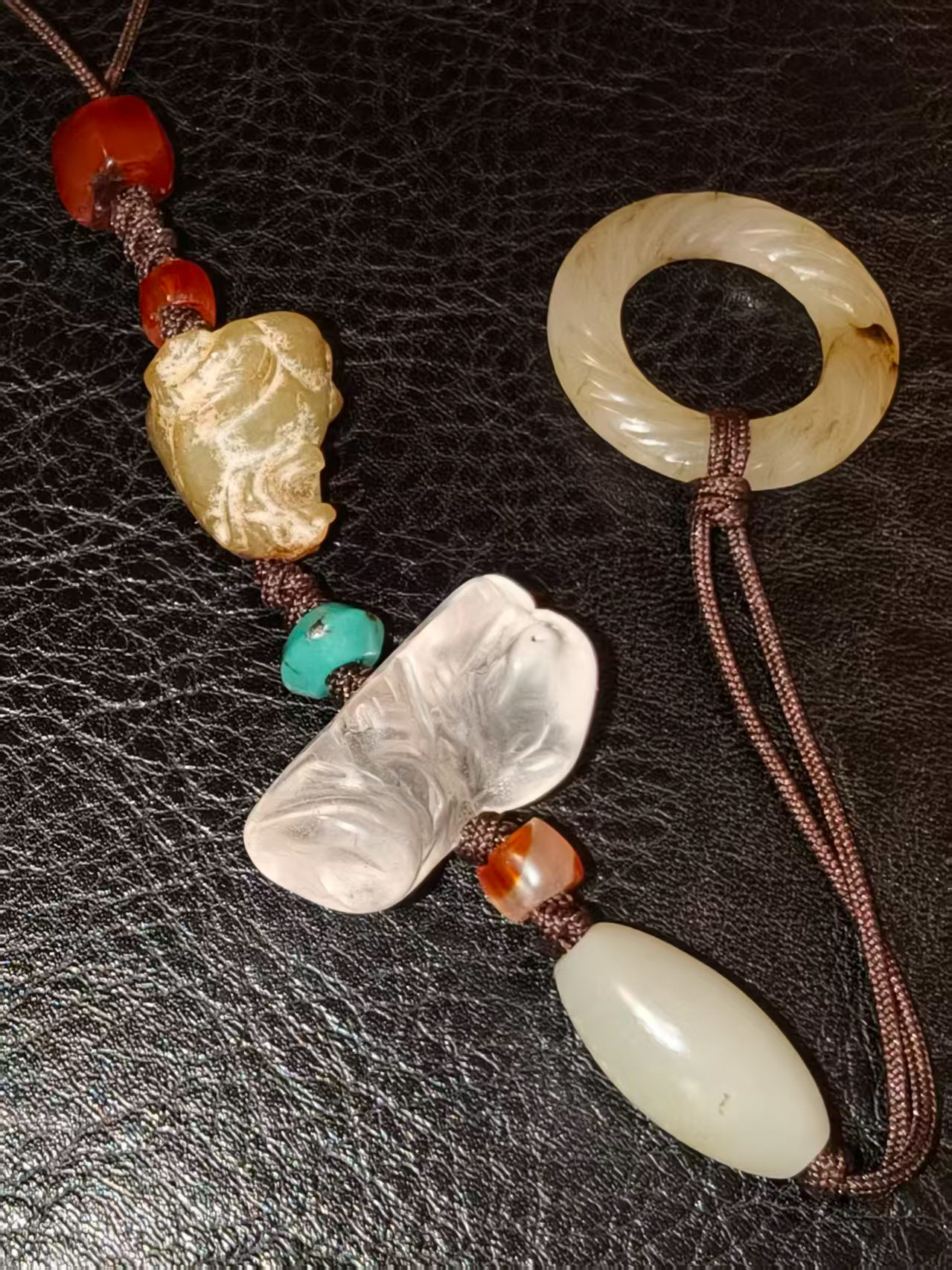 尺寸:南红佛手5*3.2*2cm、天河石长2.2cm、绿松石大颗1cm
