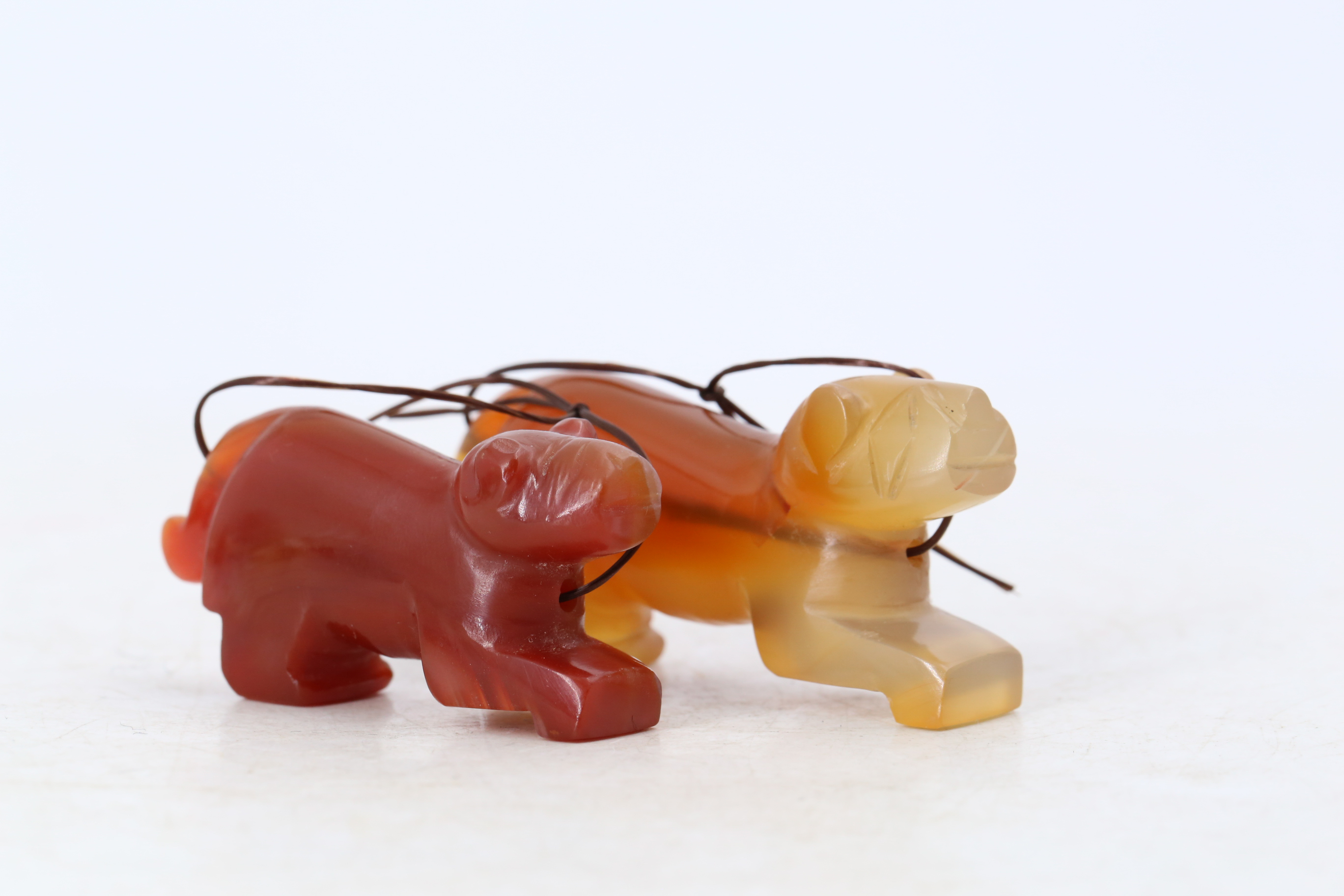 2280 老缅甸双色玛瑙虎形挂件(两件)