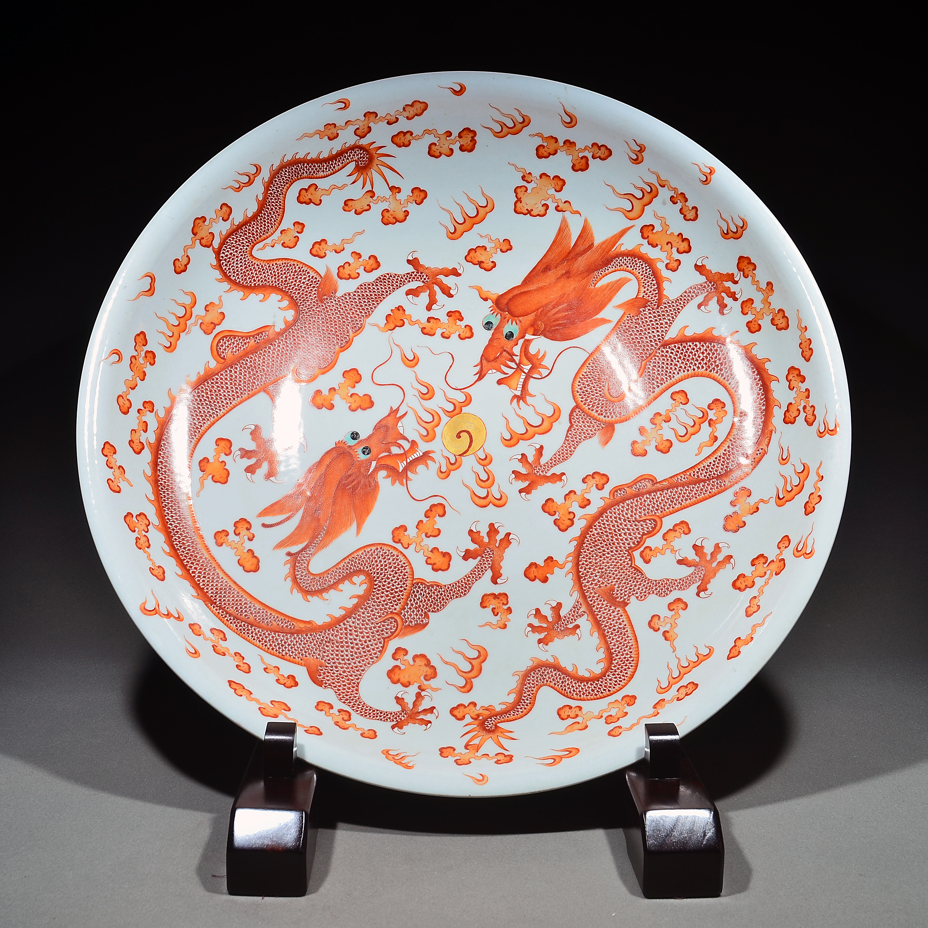 2387 矾红描金双龙戏珠纹赏盘