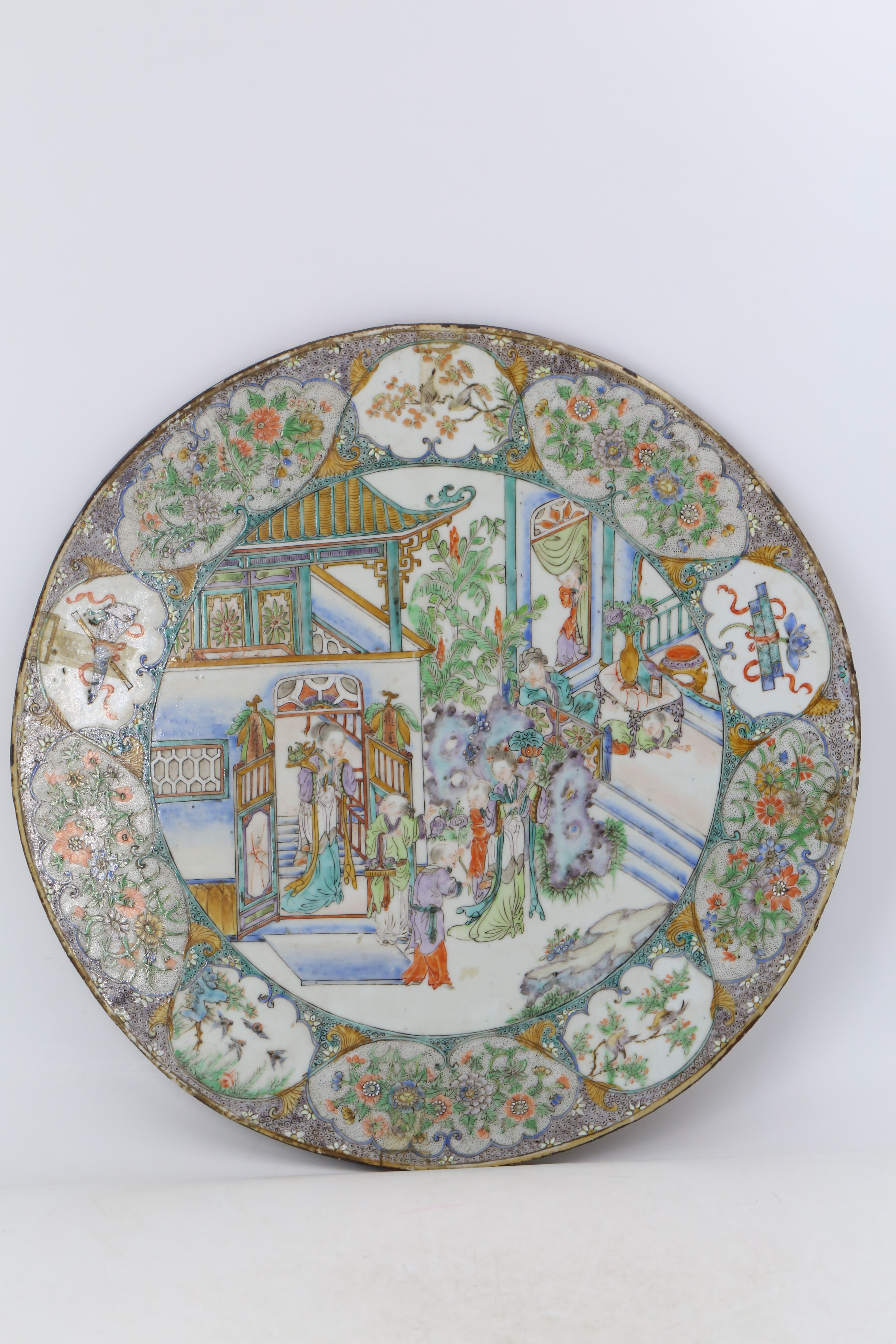 2388 五彩庭园人物纹圆形桌面嵌板