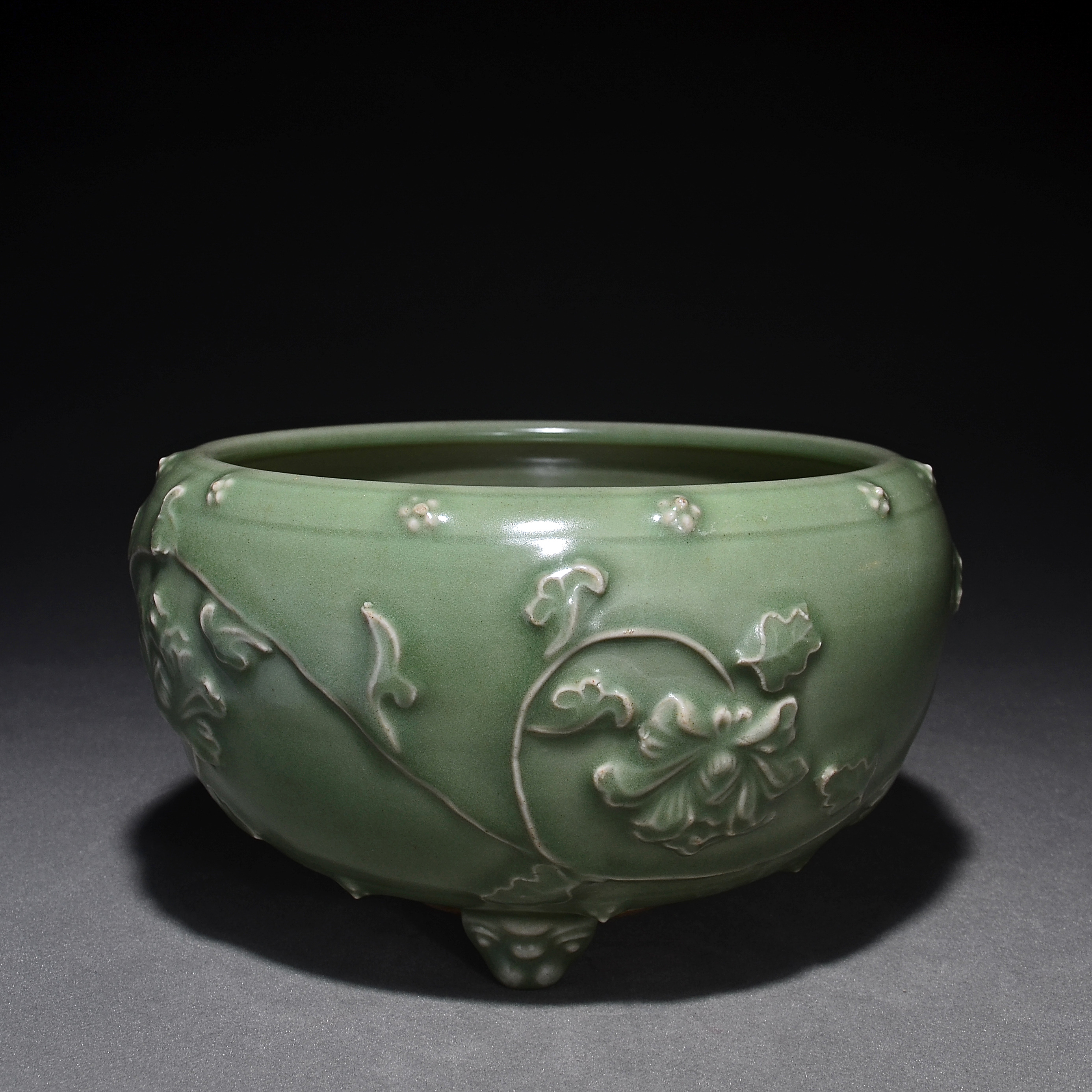 2390 龙泉窑青釉鼓钉纹堆雕缠枝莲纹笔洗