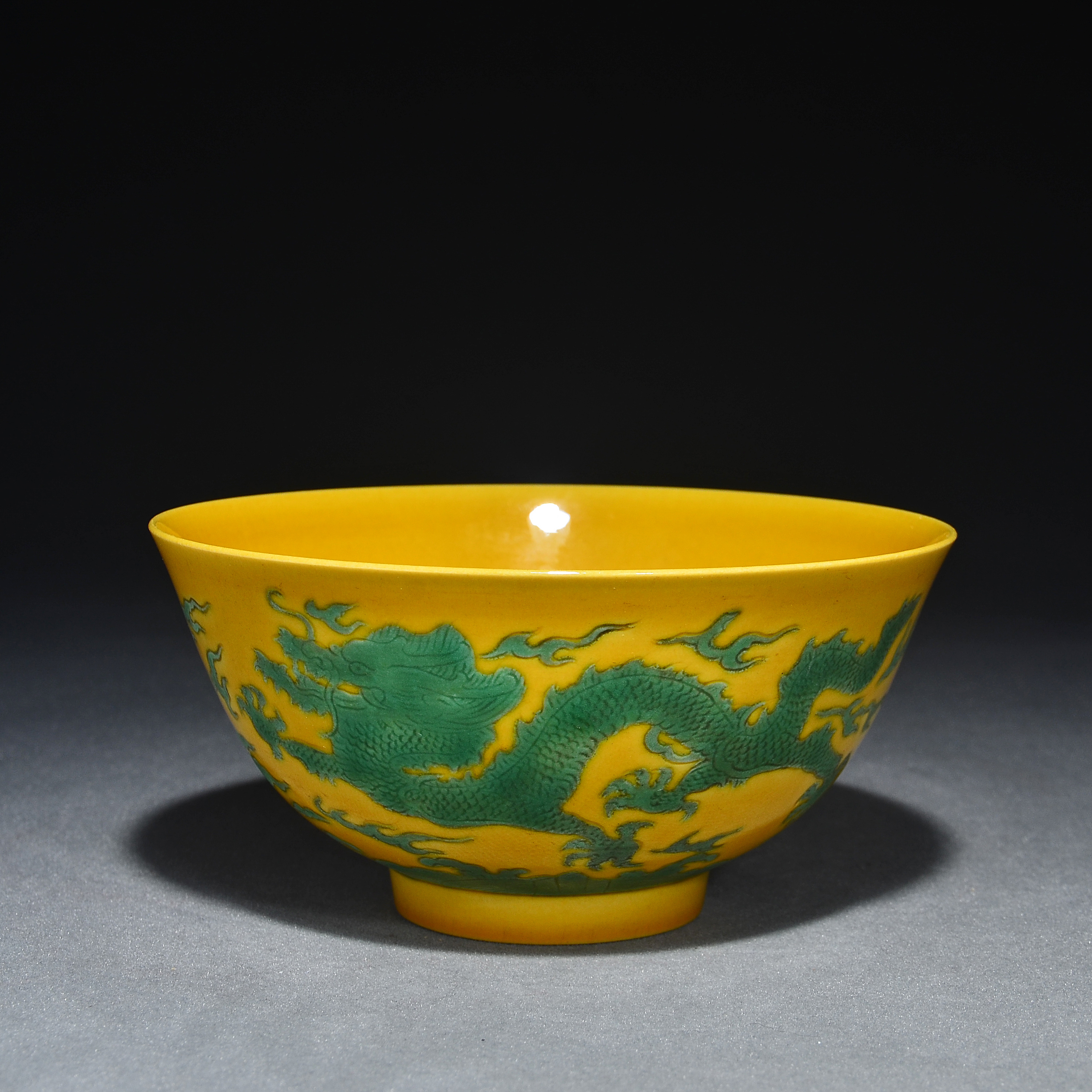 2393 黄地绿彩龙纹碗