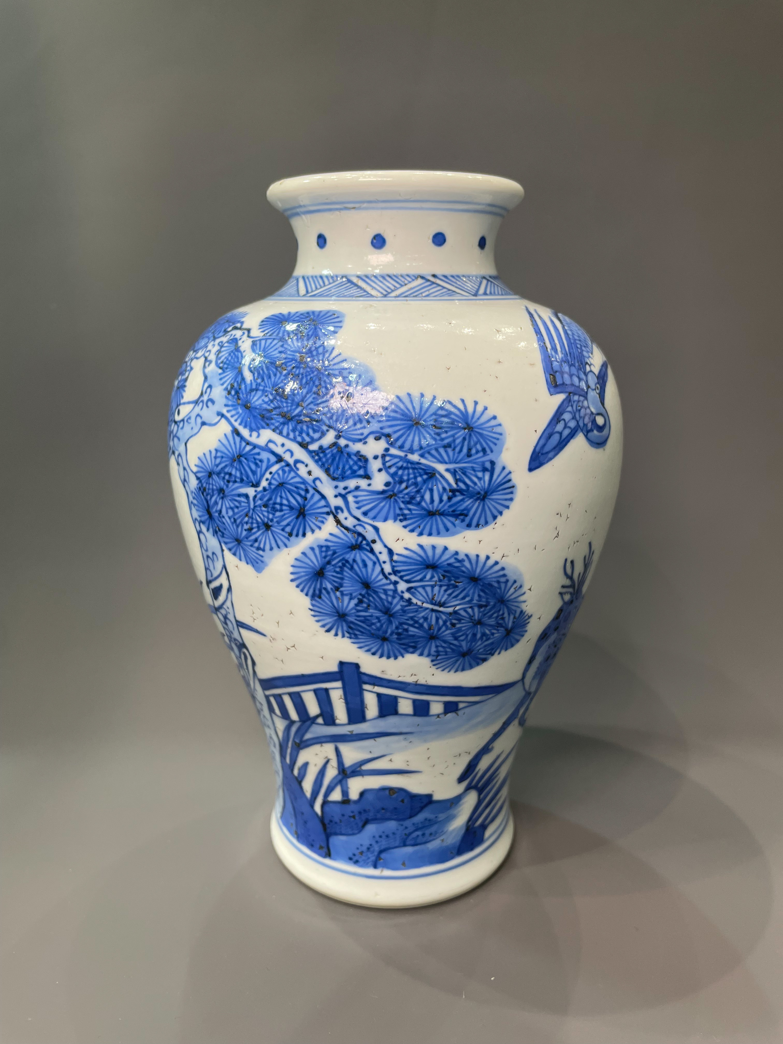 2396 青花鹤鹿同春大口梅瓶