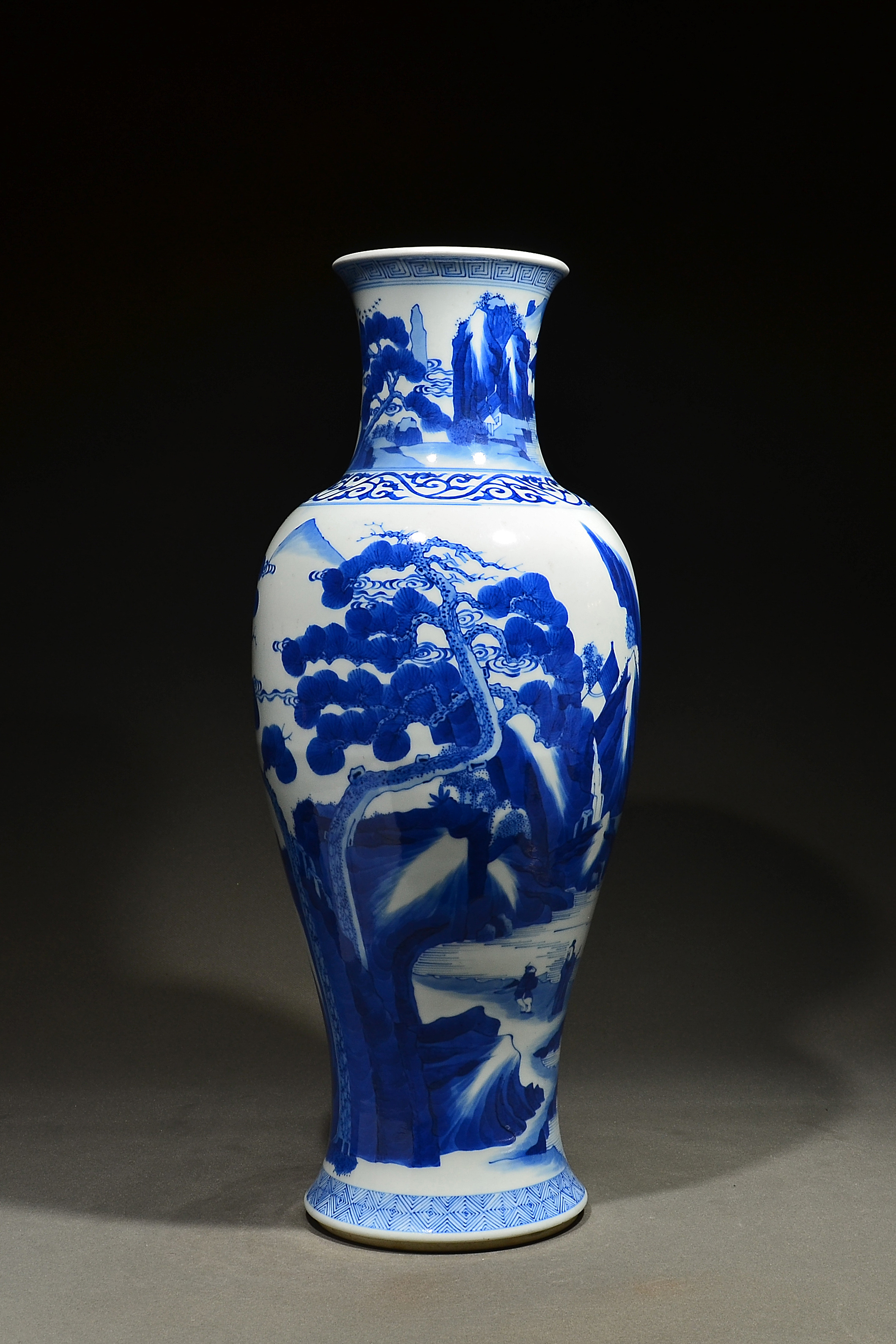 2398 青花山水人物云逸居款观音瓶