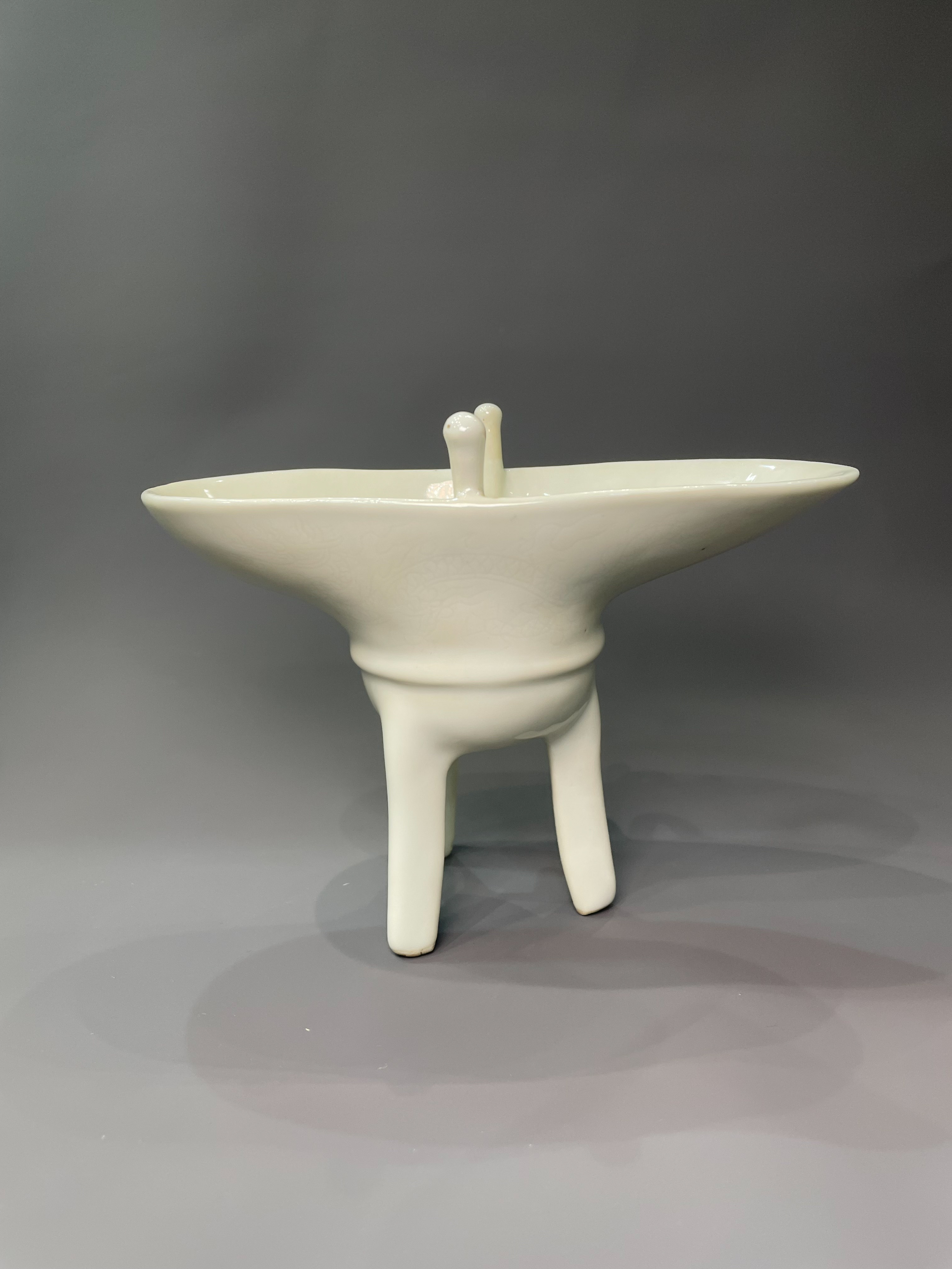 2405 甜白釉暗刻龙纹爵杯