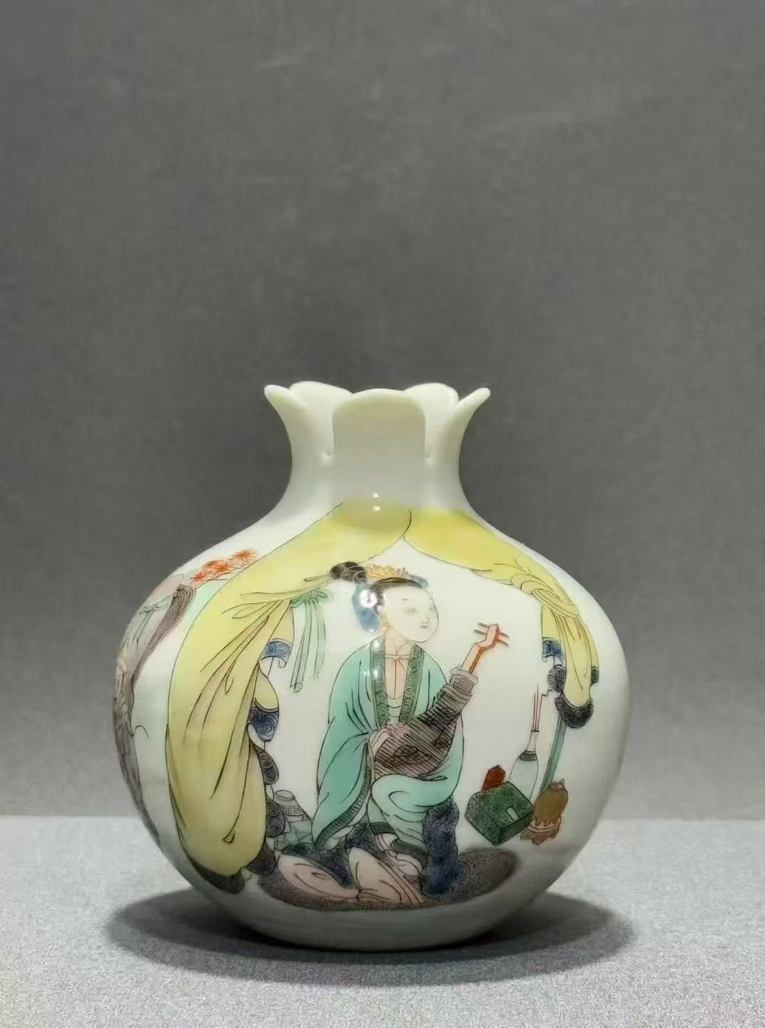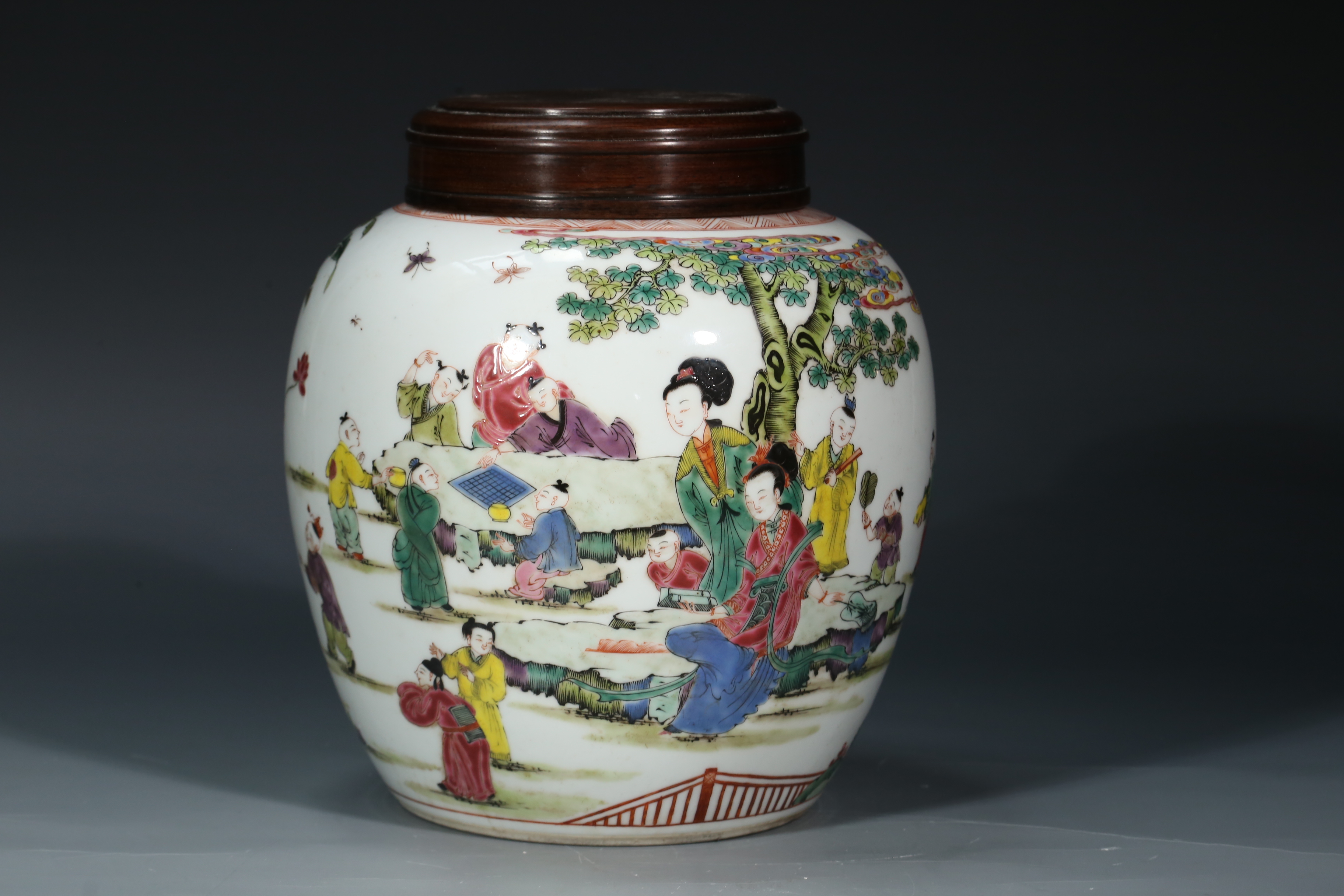 2516 粉彩四妃十六子图纹罐(带木盖)