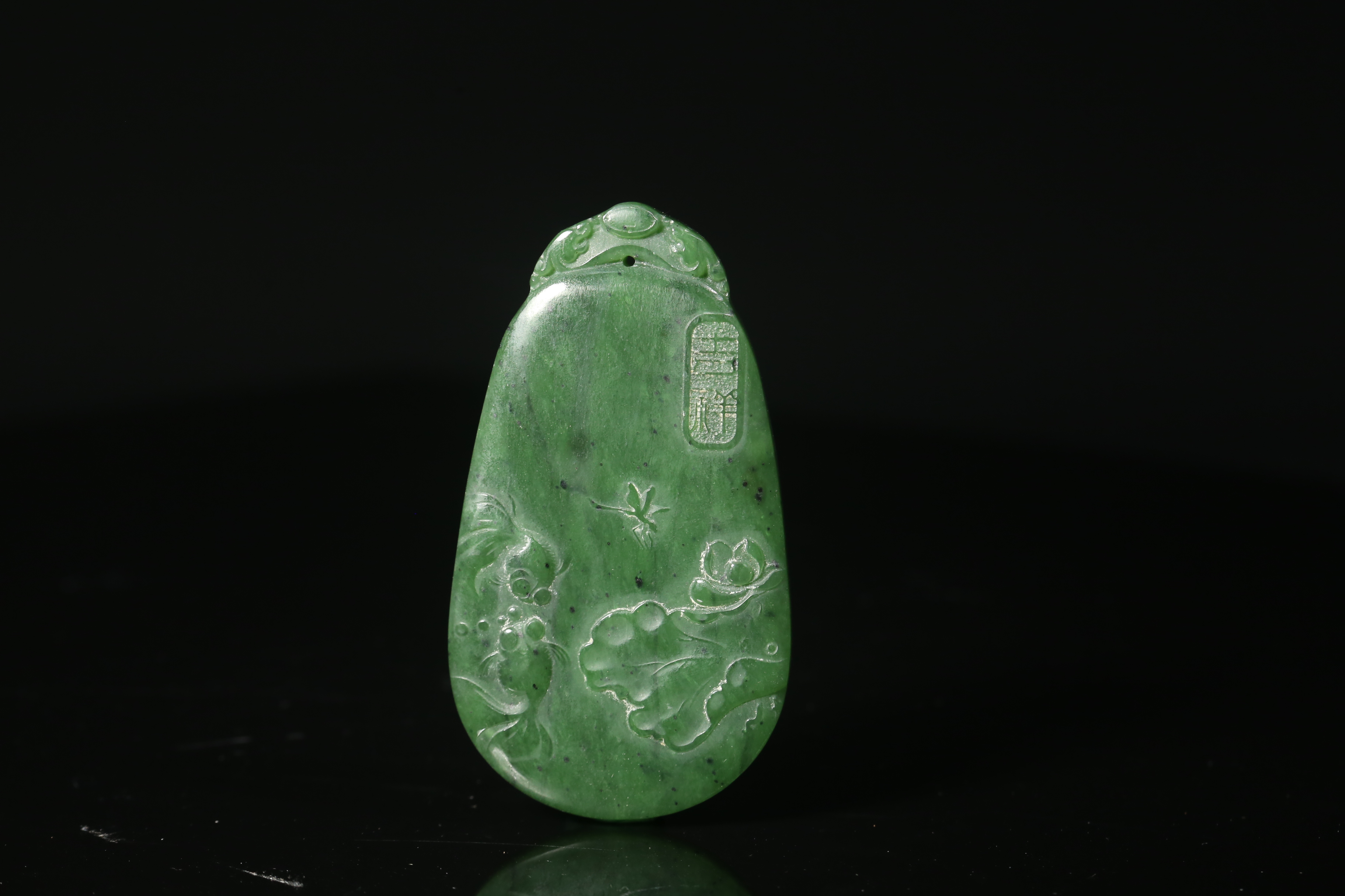 2526 碧玉雕金玉满堂佩