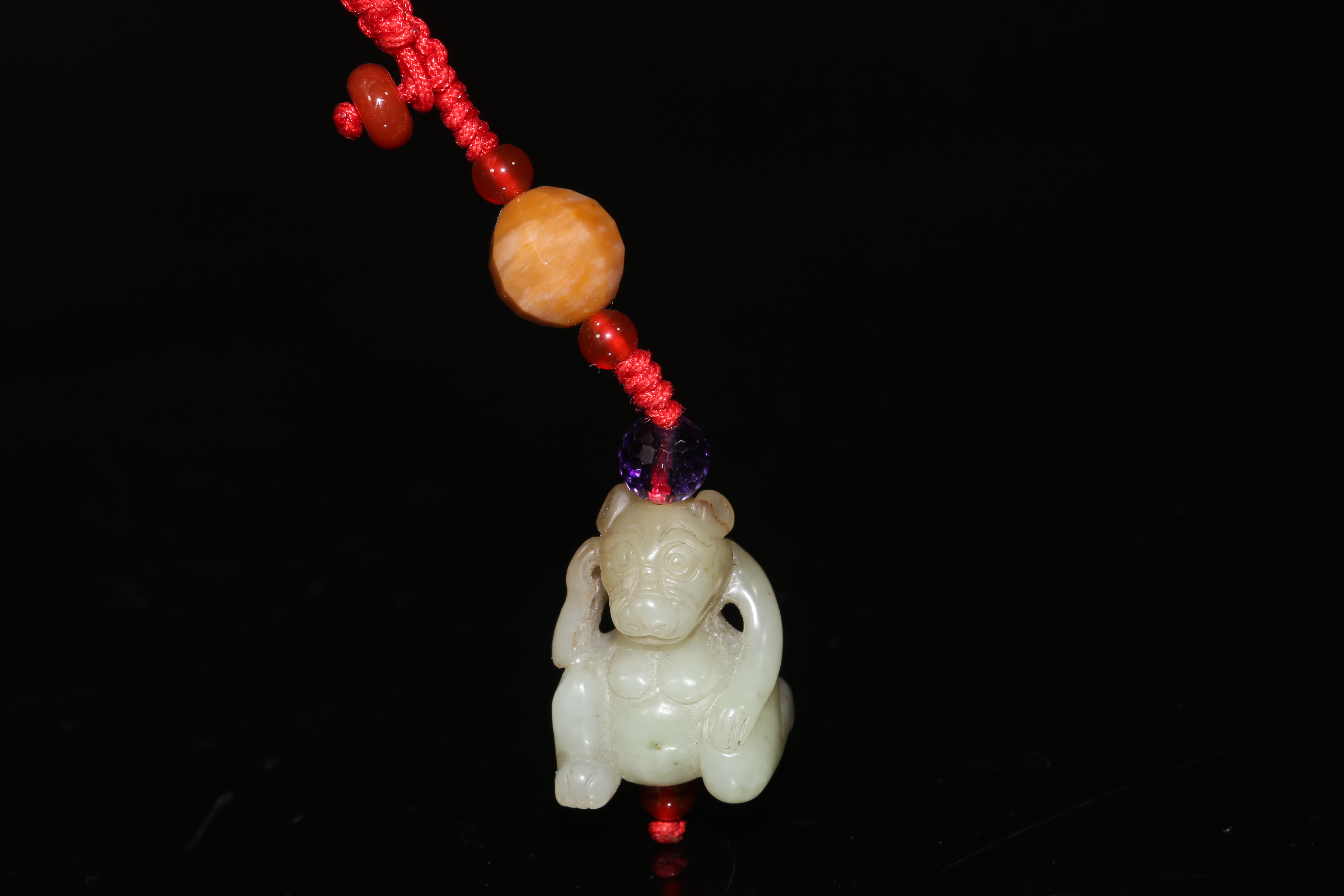 2543 白玉坐熊多宝串